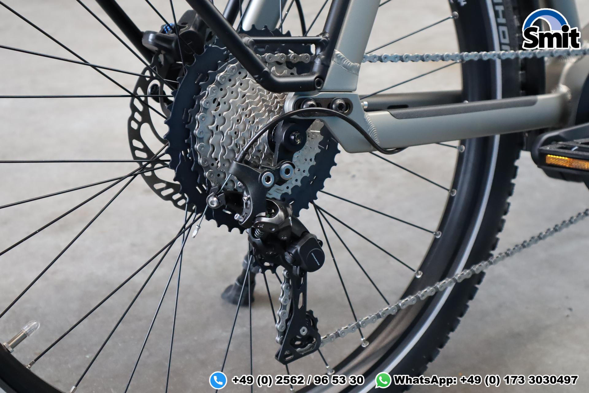Der hochwertige Aluminiumrahmen in Diamant-Form (Rahmenhöhe 49 cm) sorgt für ein stabiles und sicheres Fahrverhalten. Die SR Suntour Aion 34 Federgabel mit 100 mm Federweg sowie die breiten Schwalbe Super Moto-X Reifen (27,5″) bieten hohen Fahrkomfort, Laufruhe und ausgezeichnete Traktion auf Asphalt wie auf Schotterwegen.
