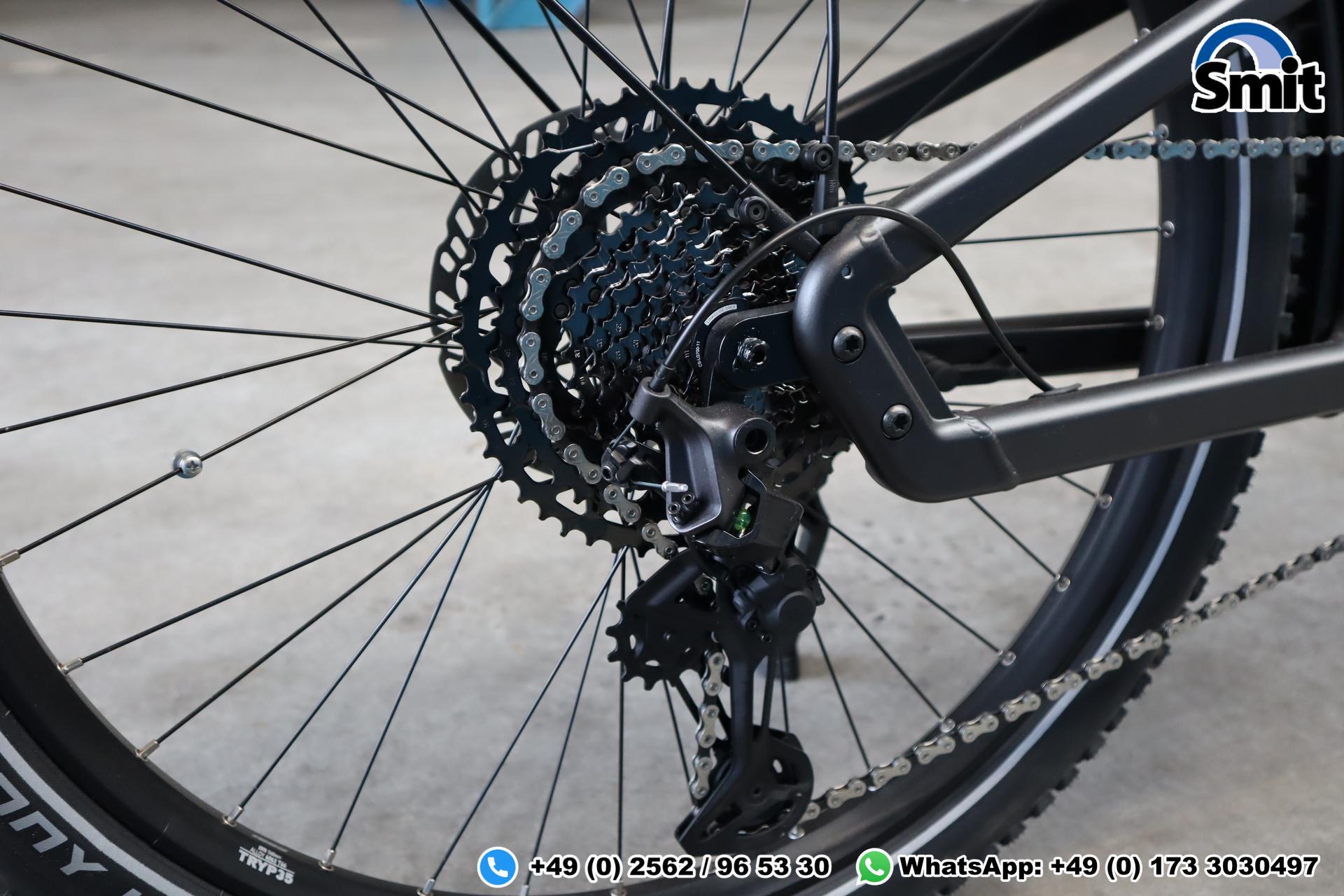 Der hochwertige Aluminiumrahmen in Diamant-Form (Rahmenhöhe 51 cm) bietet Stabilität und ein sehr souveränes Fahrgefühl. Dank der Vollfederung und der SR Suntour Aion 34 Federgabel mit 100 mm Federweg genießt man außergewöhnlichen Fahrkomfort – auch auf längeren Strecken. Breite Schwalbe Super Moto-X Reifen (27,5″) sorgen für Laufruhe, Grip und Sicherheit.