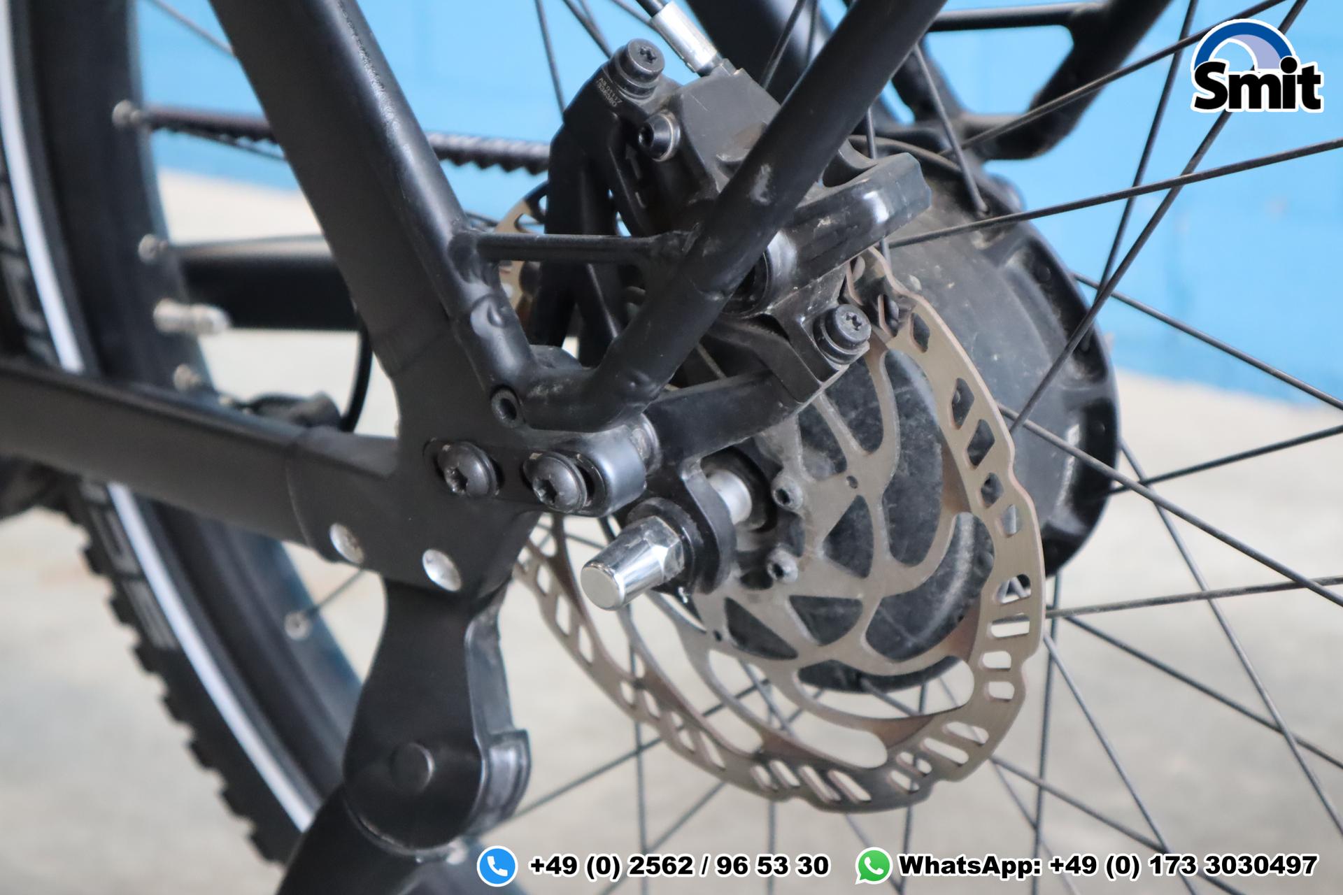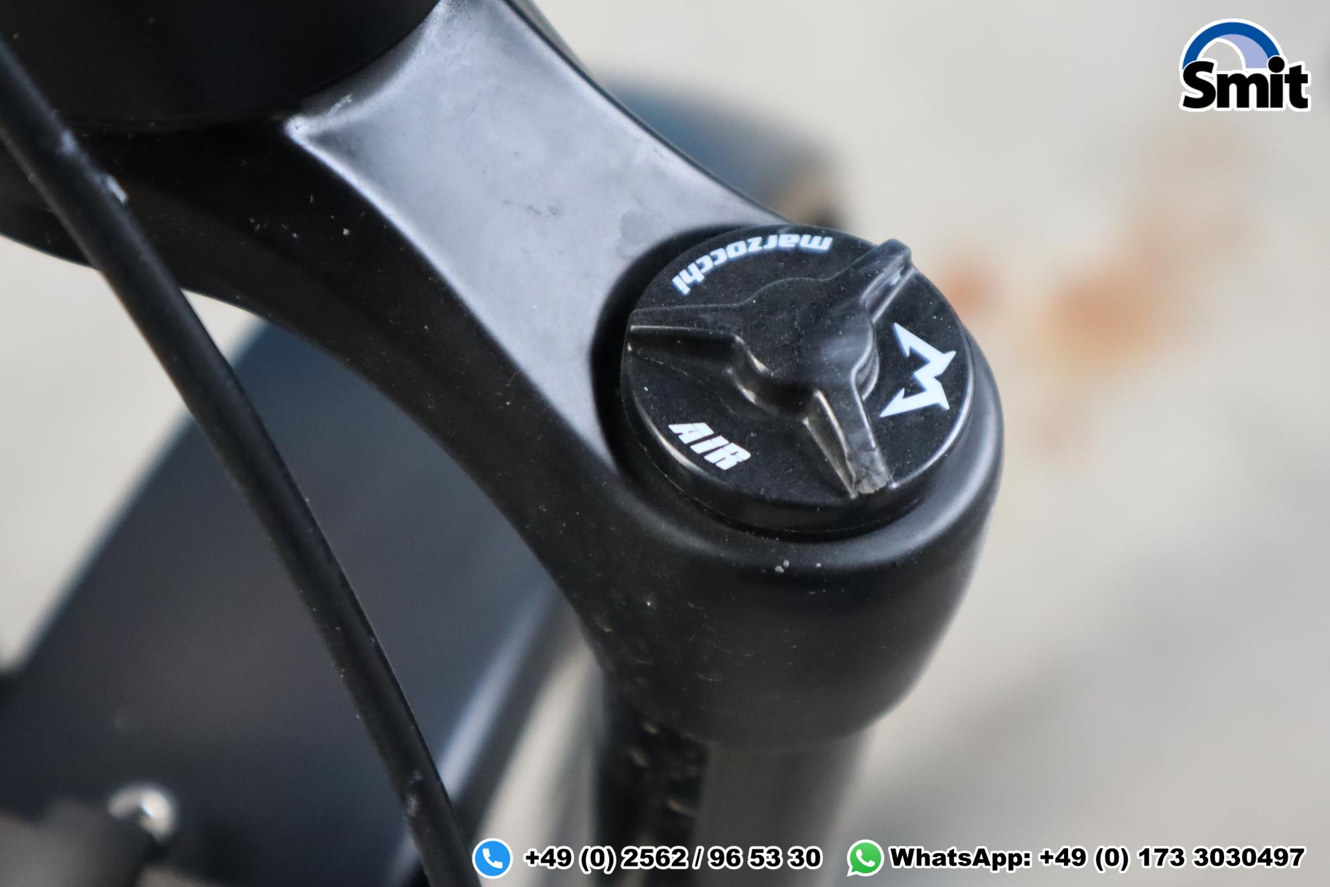 Der hochwertige Aluminiumrahmen in Diamant-Form (Rahmenhöhe 49 cm) sorgt für ein stabiles, souveränes Fahrgefühl – auch bei höheren Geschwindigkeiten. Die SR Suntour Mobie Federgabel mit 100 mm Federweg sowie die breiten Schwalbe Super Moto-X Reifen (27,5″) bieten hohen Fahrkomfort, Laufruhe und sehr gute Straßenlage.